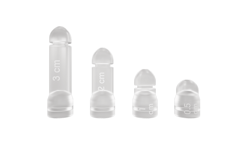 Infla2P™는 다양한 환자의 해부학적 구조를 수용할 수 있도록 포괄적인 사이즈 옵션을 제공합니다. 해부학적 맞춤 옵션에는 12.5mm 직경의 실린더가 포함되며, 14cm, 16cm, 18cm 길이로 제공됩니다. ConnectSecure™ 후방 팁 연장기(Rear Tip Extenders)를 사용하여 길이를 추가로 맞춤 설정할 수 있습니다.²